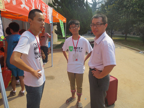 7日上午,大乐透 党总支副书记兼2013级新生辅导员王慕东和团总书记王建阳前往新生接待处,亲切看望了前来报到的新生,并对学院迎新工作进行了指导。晚上,王慕东、王建阳和李春玲前往孔子文化广场慰问迎新的工作人员。