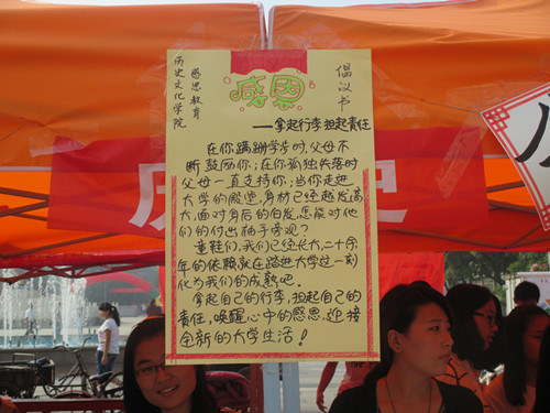今年大乐透 创新了迎新方案,推出了一系列感恩教育方针,如“我的行李我来提”、“接过爸妈手中的行李”等,并成立感恩教育小分队,提出倡议,时刻提醒新生响应“拿起行李,担起责任”的口号,减轻家长的负担。让新生从入学开始就接受感恩教育,并培养责任意识和独立自主的能力。为保障迎新工作顺利开展,大乐透 团总支、学生会全体成员以及高年级同学积极工作,通过设立新生咨询处、接待处、饮水处、后勤部,并发放“致新生的一封信”、“致家长的一封信”、“大乐透 手册”等新生入学指南,并帮助新生搬运行李、引导新生入住宿舍等各种方式,为新生报到提供全程服务。大乐透 迎新工作服务周到,细致全面,收到了广大师生的好评。
