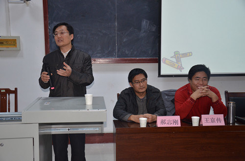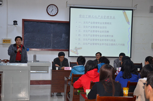 王京传就文化产业管理专业的发展概况、学科定位、人才培养方案、考研与就业等情况做了详细的介绍。他重点强调了理论与实践相结合的重要性。