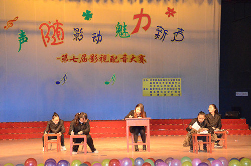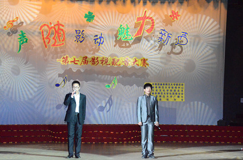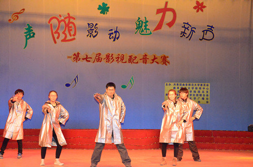 在第一环节中,选手们对自选影片进行配音,在尽可能还原影视角色的基础上增添新的元素,彰显个性魅力。选手们配音精准,诠释到位,感情丰富,配合默契,引来观众阵阵掌声。在才艺展示环节,各组的节目形式新颖、精彩纷呈,配乐诗朗诵《弹指千年》古典韵味十足,舞蹈串烧《路灯下的梅兰点了一把火》激情四射,小品《超幸福鞋垫》笑声不断,默剧《考试》让人眼前一亮,一曲《我爱你中国》将比赛推向了高潮。前两个环节分别有专业老师进行现场点评,为选手提供了宝贵的意见和建议。在最后环节中选手们抽取不同的心情对影片《让子弹飞》进行另类演绎,或兴高采烈或歇斯底里,引来观众的热烈掌声。最终“sunshine”组合荣获一等奖。