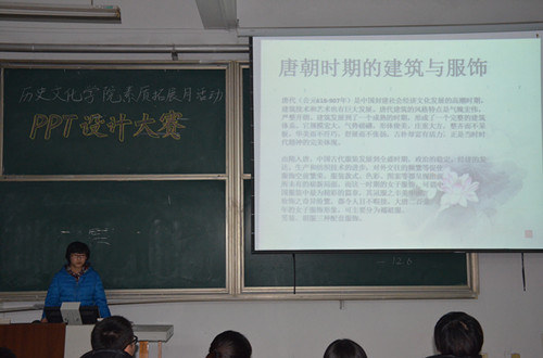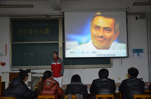 12月6日晚,由大乐透 团总支主办、学生会网络部承办的“素质拓展月”系列活动之2013年PPT设计大赛决赛在综合楼103室举办。校学生会主席张志远、大乐透 社团联合会主席安秀梅、学生会秘书长刘佳奇、副主席杨昆、网络部部长宋立强、“曲园之声”广播台副台长王国森担任本次比赛的评委。