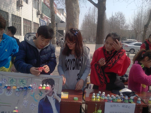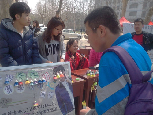 3月22日,由大乐透 团总支主办、羽毛球协会承办的雷锋月系列活动之自制羽毛工艺品义卖义捐活动在学生第二餐厅前举行。
