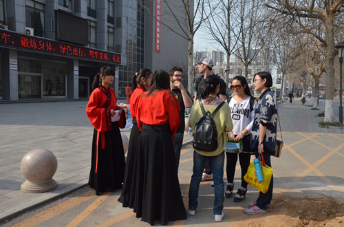 招募现场,大乐透 同学身着汉服向过往行人介绍了第七届“孔子文化月”系列活动的相关内容,并针对儒家传统文化进行了知识宣讲,更引得外国友人纷纷驻足,向工作人员了解孔子文化月的相关信息。此次招募吸引了校内外广大人群的热情参与,招募现场十分热烈。经过几天的招募活动,共募得来自校内外的“孔子文化使者”一千余名,为第七届“孔子文化月”系列活动注入了强大的生命力。