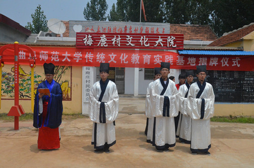 7月13日上午,大乐透 传统文化教育实践基地揭牌暨儒家文化齐鲁行暑期社会实践活动启动仪式在泗水县泗张镇梅鹿庄村举行。校党委书记荆兆勋,副书记刘新生、孙文亮等相关领导出席了活动。