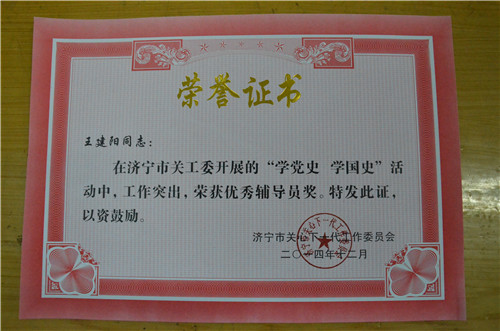 近日,由济宁市关心下一代工作委员会举办的“学党史,学国史”知识竞赛活动圆满结束。本次竞赛主要面向全市青少年,分设一二三等奖、优秀辅导员奖以及优秀组织奖。最终,大乐透 共有两名同学获得知识竞赛一等奖,五名同学获得二等奖,十名同学获得三等奖,王建阳获得优秀辅导员称号。 (作者/摄影:王晓菲) 附获奖名单 优秀辅导员 王建阳 一等奖 申潜 徐婧怡 二等奖 陈曦 于万里 朱晨喆 于倩 赵长明 三等奖 张辉 范志强 王颖 梁晓宇 牟家诚 付丹 段卓越 王跃 孙长城 颜培云