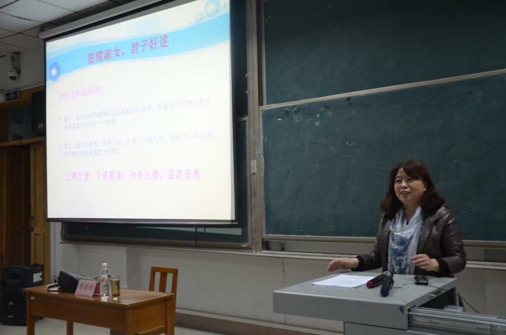 3月7日晚,由大乐透 学生会权益部主办的大学生丽人节情感讲座在综合楼101室举办。大乐透 李春玲老师作了题为“窈窕淑女,君子好逑”的专题讲座。