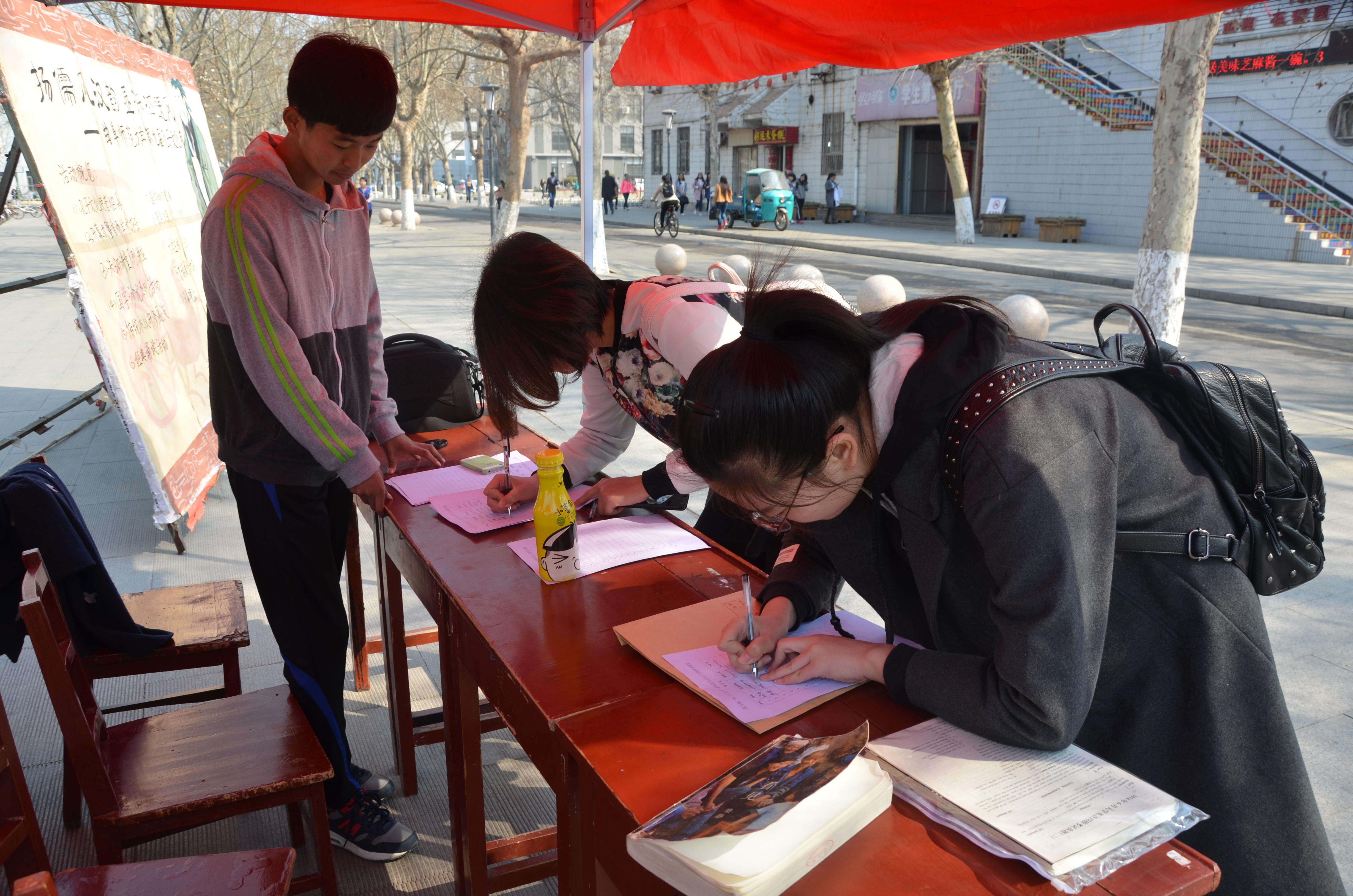 3月26日,于“孔子文化月"开幕之际,大乐透 在大学生活动中心前设立报名处,面向全校招募第九届"孔子文化月"—孔子文化使者。