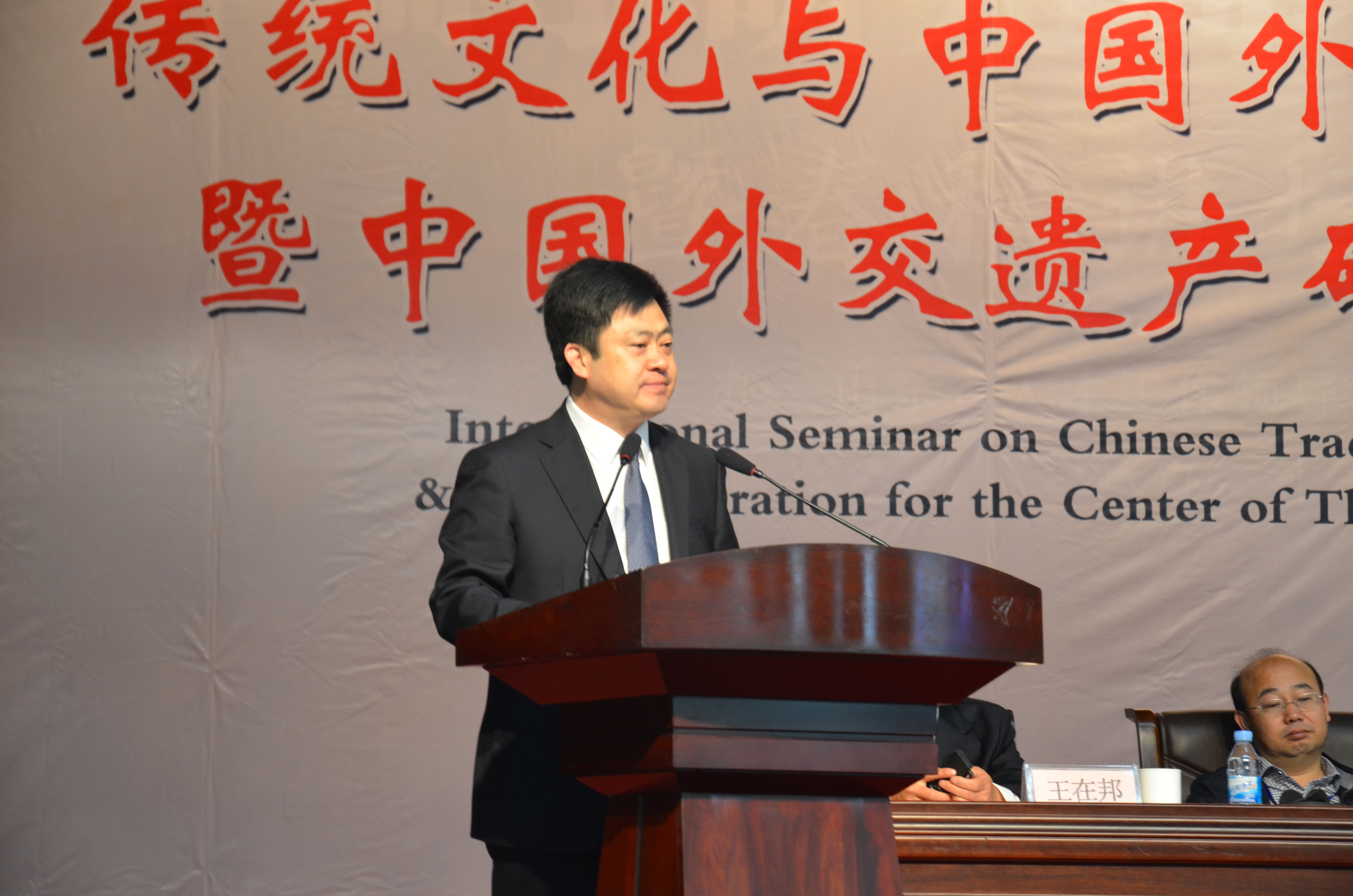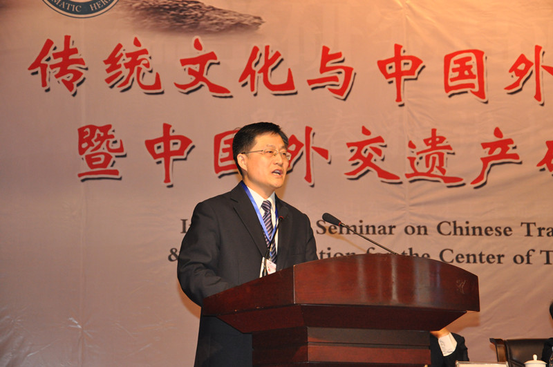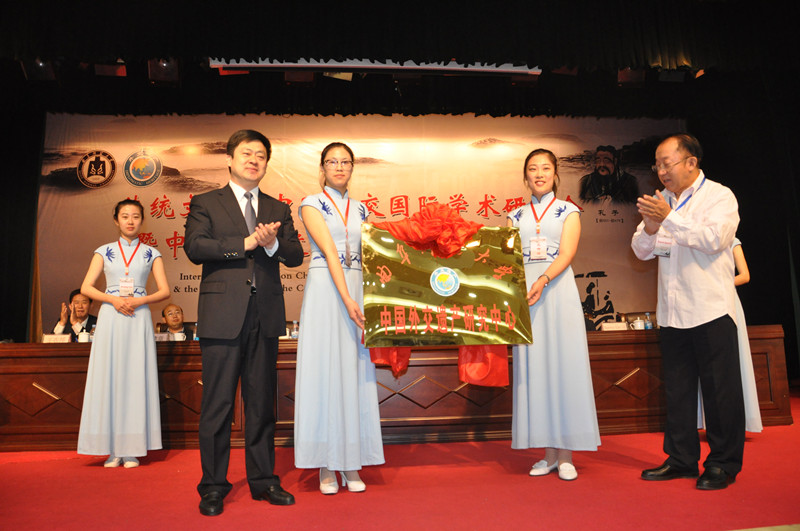 中国社会科学院学部委员、全国政协委员、我校中国外交遗产研究中心名誉主任张蕴岭教授,加拿大国际治理创新中心高级研究员巴瑞·卡林,我校中国外交遗产研究中心主任王在邦教授出席开幕式,并致辞。中共中央政策研究室原秘书长、我校中国外交遗产研究中心顾问纪玉祥与校长戚万学共同为“中国外交遗产研究中心”揭牌。