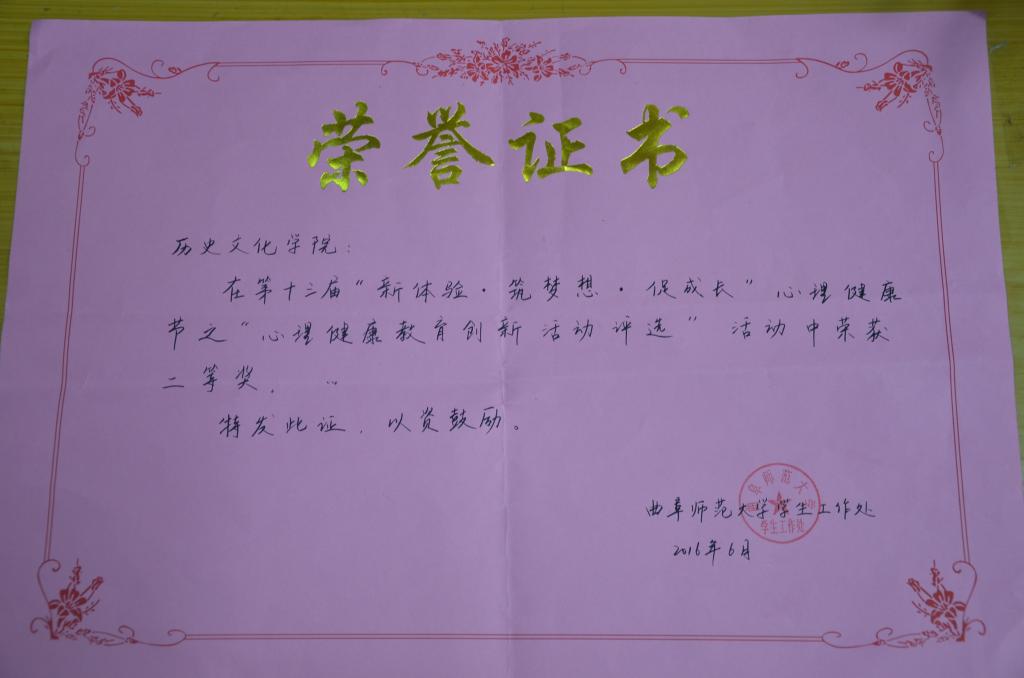 5月29日,大乐透 第十三届“新体验·筑梦想·促成长”心理健康节之“心理健康教育创新评选”活动结束,大乐透 在此活动中荣获二等奖。