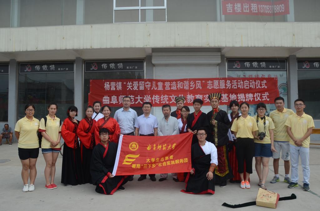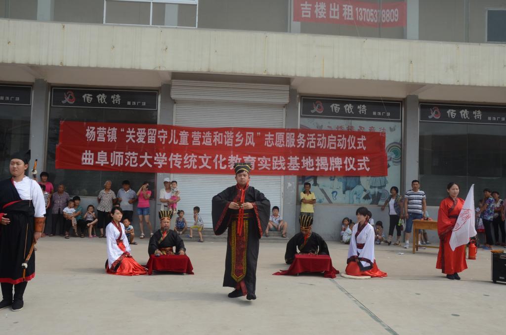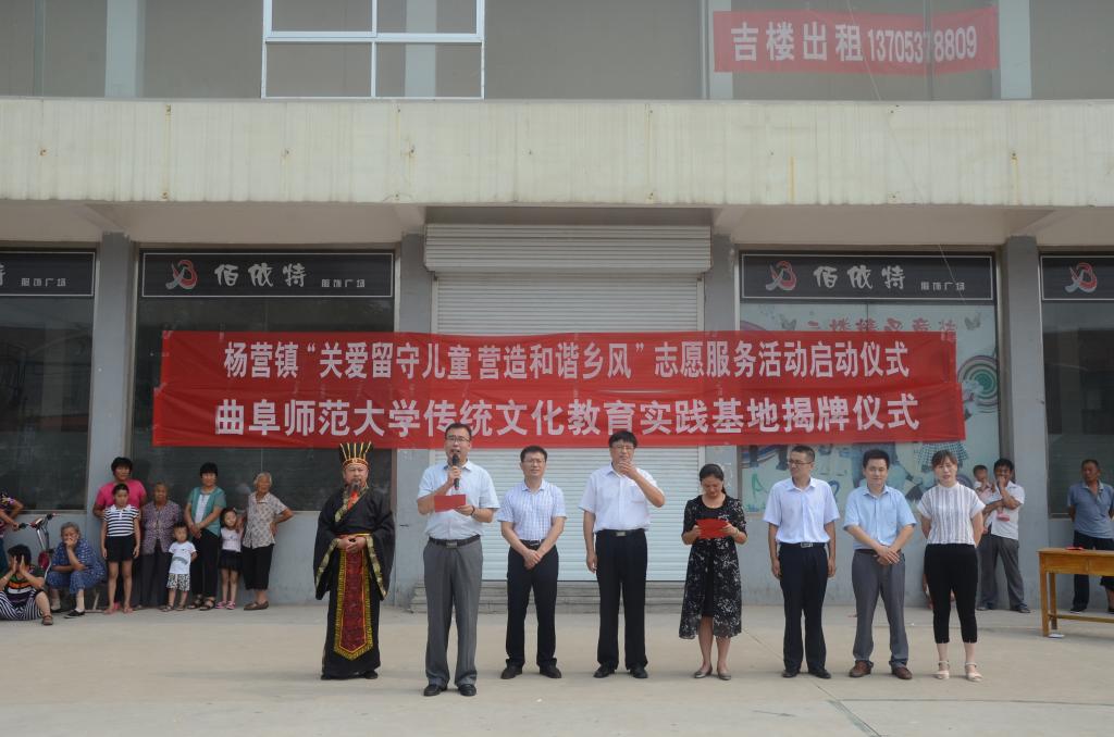 王慕东和张猛共同为梁山杨营镇传统文化教育实践基地揭牌。张猛和王建阳分别发表讲话就传统文化教育实践基地和服务站的建成表示祝贺。