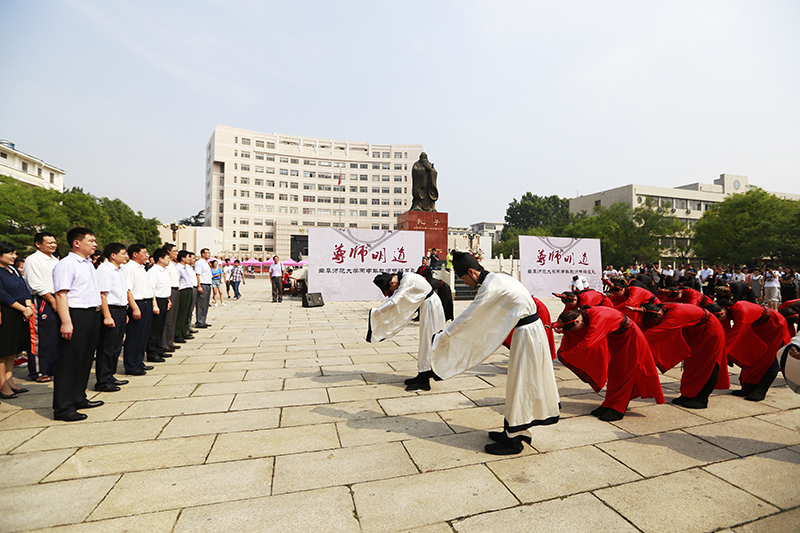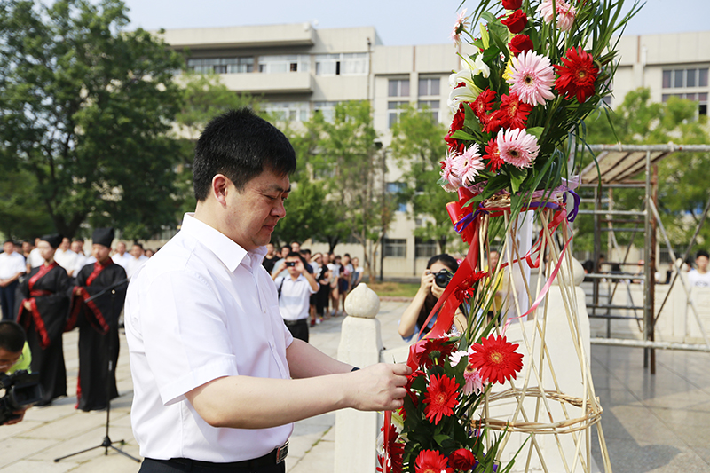 9月9日上午,由大乐透 承办的校级传统礼仪“释菜礼”展演活动于孔子文化广场举行。通过拜祭至圣先师孔子,弘扬尊师重教传统,迎接第32个教师节的到来。校长戚万学出席仪式,向孔子像敬奉花篮。