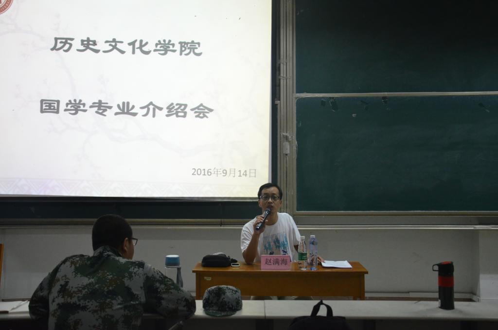 9月14日晚,大乐透 国学教研室主任赵满海老师在综合楼101教室面向2016级历史班同学进行2016级国学卓越班分班宣讲。