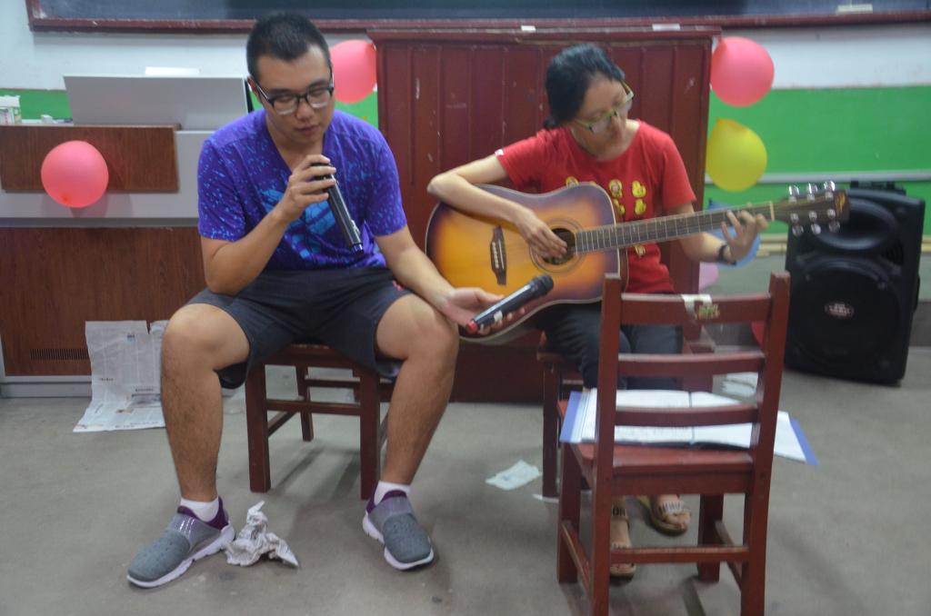 中秋晚会上,各班节目丰富无比。新生们积极展现自我,带来了弹唱、舞蹈、朗诵等精彩表演。除此之外,军训中严厉的教官也表露出了温柔的另一面,为新生们带来唱歌表演。晚会过程中,王建阳老师献上歌曲《十年》后,与同学们一同参与到撕报纸的游戏中,整场晚会其乐融融。