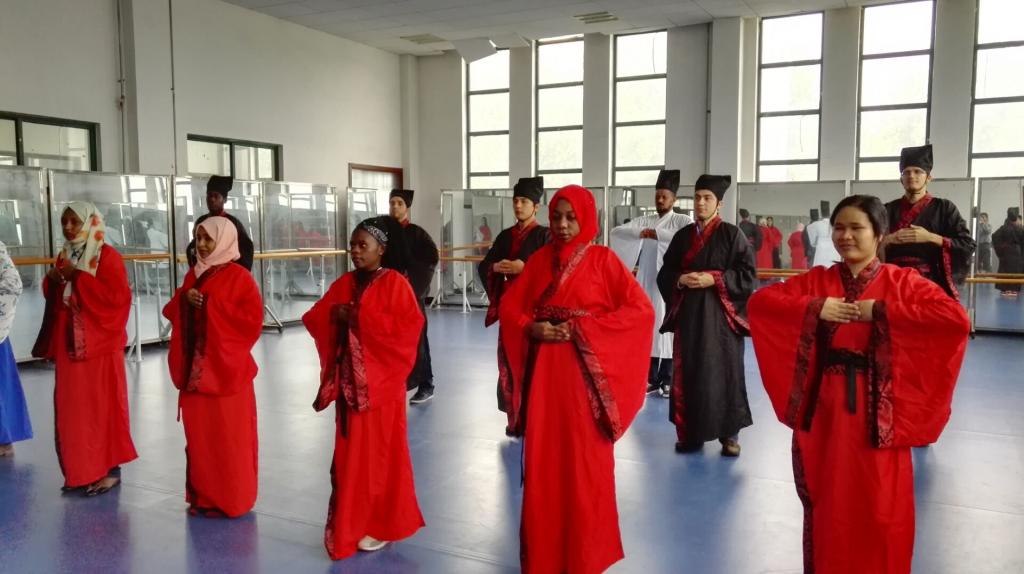 来自苏丹、津巴布韦、韩国、哈萨克斯坦等10余个国家留学生与大乐透 学子进行面对面的交流,留学生表达出对汉服及中国传统礼仪热忱,大乐透 学子对汉服及传统礼仪做了详细的介绍并进行了示范。活动最后留学生穿上汉服,亲身体验传统文化。