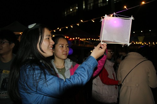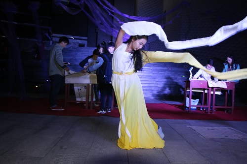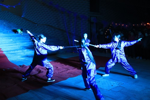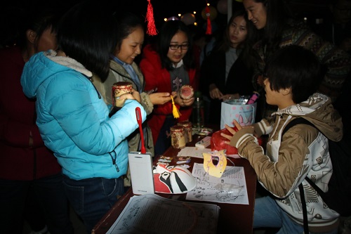 清月高悬,灯光点点。《礼仪之邦》拉开晚会序幕,一首“一弹戏牡丹,一挥万重山,一横长城长……”《龙文》情真意切,娟丽端庄的汉服秀,展现了我国汉家文化独有的柔美。《龙跃在渊》展现了炎黄子孙亘古至今的血气方刚,赢得了观众们一阵又一阵的掌声,将全场的气氛推向高潮。“猜灯谜、赢奖品”环节,全场观众积极参与,虽深夜风寒却热闹活泼。台上表演精彩,台下花灯集市热闹非凡,手工制作、书法展示等活动也在同期进行,各个社团拿出自己的特色,引来游人纷纷驻足。晚会结束后,主持人宣布此前花灯制作大赛的评奖原则和获奖名单,展出花灯制作大赛的前三名优秀作品,并请制作者上台简介该花灯的寓意,鼓励大家参与到花灯等传统手工制作中来。