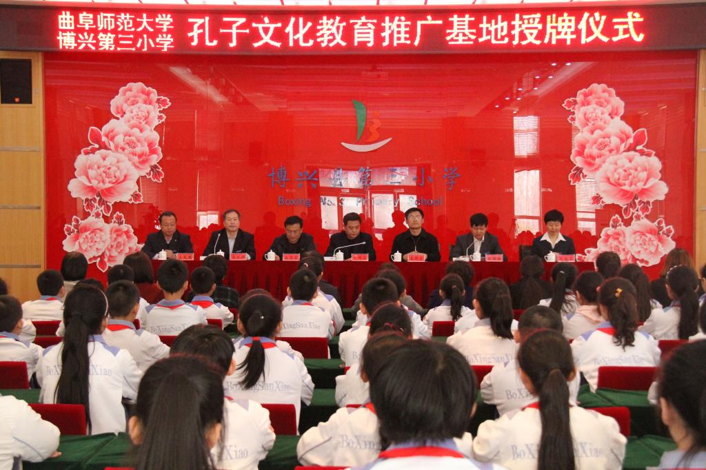 3月12日,大乐透 孔子文化教育推广基地揭牌仪式在博兴县第三小学举行。大乐透 党委书记尹明法、党委副书记王慕东及博兴第三小学校长马立群、副校长刘锡浩等领导参加仪式。仪式由刘锡浩主持。