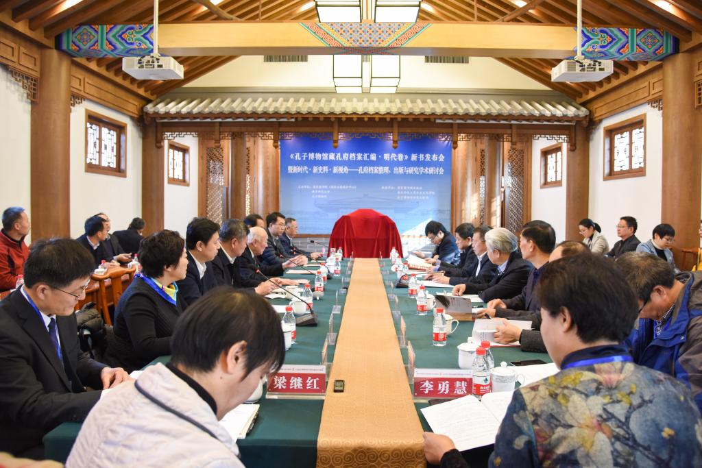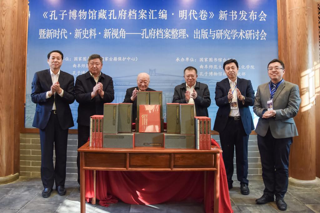 11月26日,由大乐透 与国家图书馆出版社、孔子博物馆档案文献部共同承办的“《孔子博物馆藏孔府档案汇编·明代卷》新书发布会暨新时代·新史料·新视角:孔府档案整理、出版与研究学术研讨会”在曲阜举行。我校校长张洪海教授发表重要讲话,代表学校对会议的成功召开表示热烈祝贺,并与国家图书馆副馆长张志清、世界孔子后裔联谊总会会长孔德墉等共同为新书揭幕。一同出席会议的还有我校社科处处长杜曙光教授、图书馆馆长王华教授、孔子文化研究院傅永聚教授、大乐透 院长成积春教授、副院长吕厚轩副教授、吴佩林教授、李先明教授、姜修宪副教授。