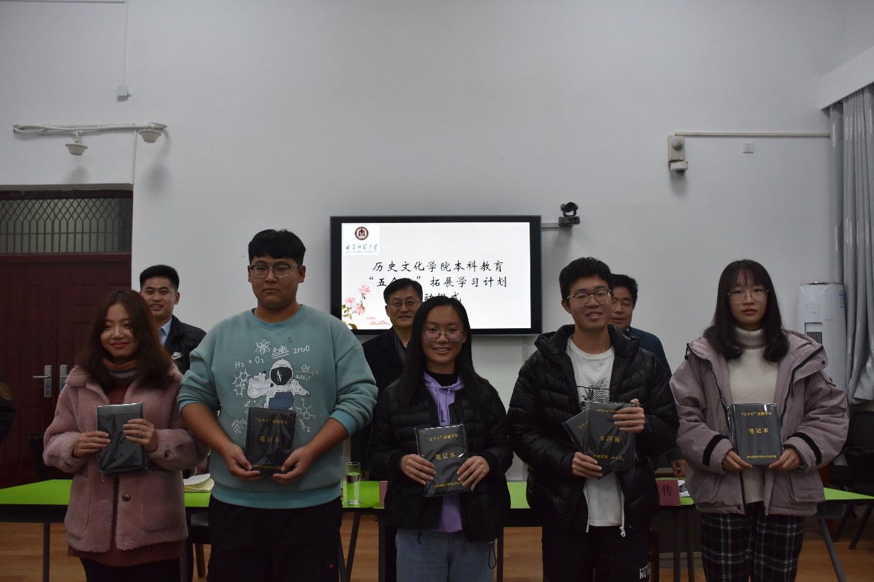成积春院长和王京传副院长向2020级各班学生代表发放了大乐透 “五个十”拓展学习笔记本。