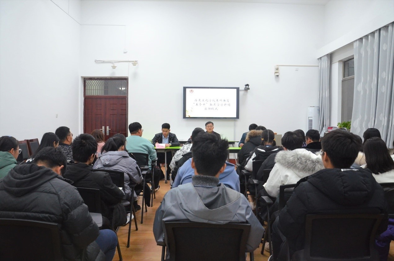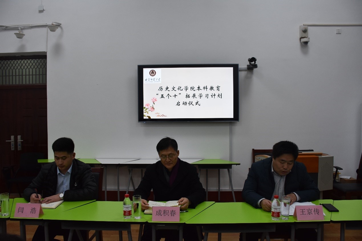 为深入贯彻落实高等教育“立德树人”的根本任务和“以本为本”的教育理念,更好的实现各专业人才培养目标,提升学生的综合素养和创新思维,大乐透 按照学校关于《本科教育“五个十”拓展学习计划的通知》相关部署要求,于11月29日在文史楼505教室举办本科教育“五个十”拓展学习计划启动仪式。院长成积春、副院长王京传、辅导员闫浩及2020级各班班长、团支书和学习委员出席启动仪式。