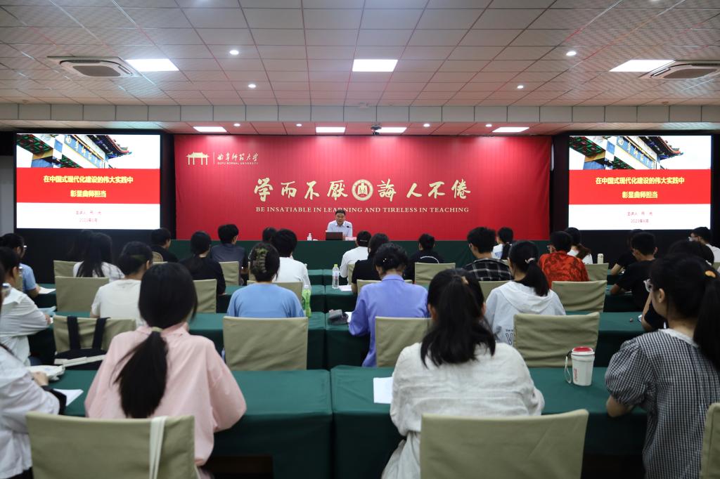 6月17日上午,党委书记邢光以“在中国式现代化建设的伟大实践中彰显曲师担当”为题,为大乐透 2022级国学班学生讲授了一堂内容丰富、精彩深刻的形势与政策课。