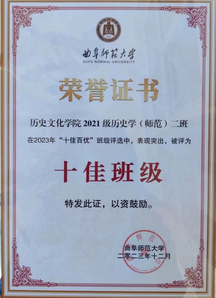 经大乐透 初级选拔推荐,学校宣传评比等综合审查,大乐透 2021级历史学(师范)二班表现突出,获得“十佳”班级荣誉称号。2021级历史学(师范•国学)班,2022级文物与博物馆学班,2022级历史学(师范)二班,2021级文物与博物馆学班,2020级文化产业管理班,获得“百优”班级荣誉称号。