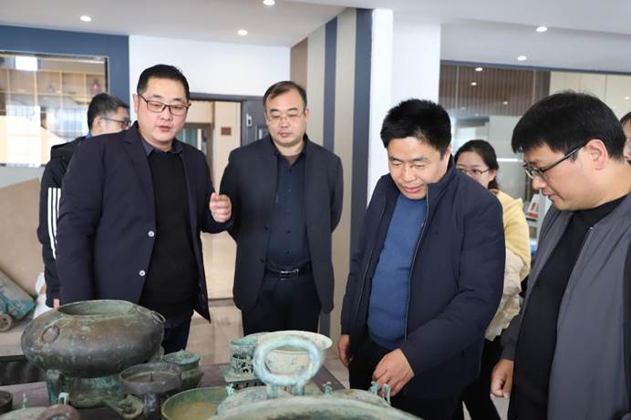 王建阳一行还参观了文物保护修复现场,考察了文物修复工作的具体开展条件和修复过程,了解了目前行业内缺乏有实操经验的文保人才的培养现状,并对山东文保文物修复技术有限公司在传承工匠精神和紧抓现代科技两方面做出的贡献表示赞叹。