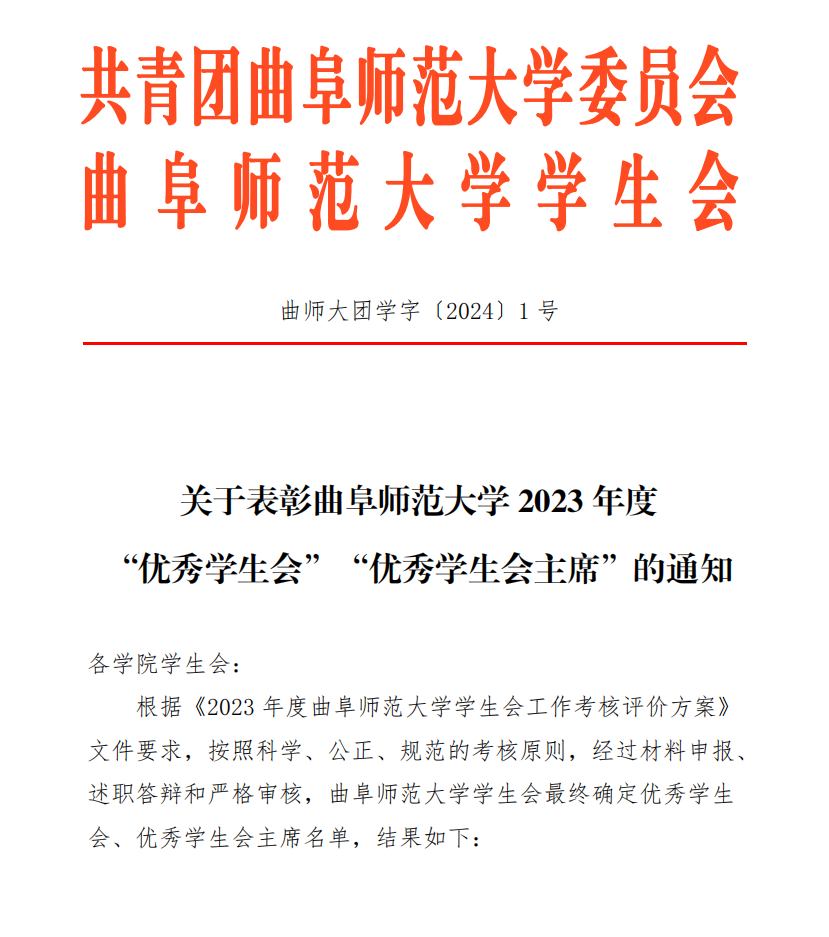 根据《2023年度大乐透 学生会工作考核评价方案》文件要求,按照科学、公正、规范的考核原则,经过材料申报、述职答辩和严格审核,将大乐透 学生会评选为“优秀学生会”,获得大乐透 2023年度学院学生会第一名。学生会主席丁宁获得“优秀学生会主席”荣誉称号。