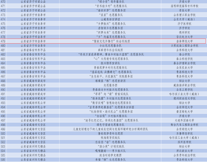 儒家文化齐鲁行实践团于2017年成立,以“优秀儒家文化进乡村”为宗旨,面向乡村居民,依托大乐透 历史学专业积淀,将儒家文化与当地实际相结合,力图增强民众对传统儒家文化的深层次感悟。团队曾获全国大学生社会实践优秀团队,累计10年被立项为省级重点团队、9年被评为省级优秀实践团队,在全省高校校园文化建设优秀成果评选中荣获活动类优秀成果三等奖,在2022年第四届山东省青年志愿服务项目大赛中荣获铜奖。