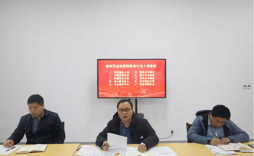会议伊始,学院开展教职工政治理论学习和师德师风专题教育,姜开勇带领全体教职工逐条重新学习了《新时代高校教师职业行为十项准则》,并通报了有关师德失范的警示案例。随后,吕厚轩通报了大乐透 近期研究生培养的相关工作,传达了我校《2025年研究生招生计划分配方案》与《研究生指导教师资格认定与管理办法》的通知等文件,并就研究生中期考核等工作进行了安排部署。王京传对学院近期的教学、科研等有关工作进行通报,传达了《山东省教育厅等5部门关于推进师范教育高质量发展的若干措施》和我校《加强教授、副教授为本科生授课的管理办法》等通知文件以及学校有关会议精神,并就课堂意识形态问题、手机入袋政策、缺课追踪、科研立项、高质量发展等工作进行安排部署。最后,姜开勇传达了学校10月21日的工作会议精神,带领全体教职工学习了我校最新下发的《教职工考勤管理办法(试行)》和《关于建设清廉学校的实施方案》等文件,并就近期的安全工作、意识形态、宣传工作、师德师风、学生管理等各方面工作进行了安排部署,提出了明确要求。