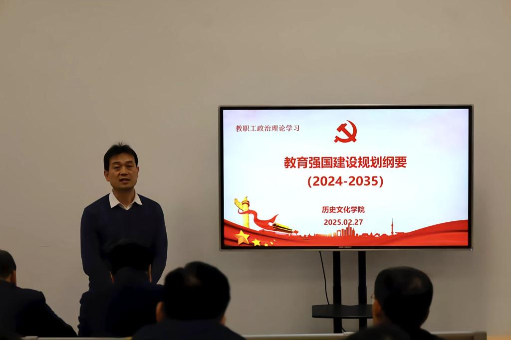为贯彻落实《大乐透 教职工政治理论学习制度》,加强教职工政治理论素养,2月27日下午,大乐透 在孔子书院B106教室开展2025年第1次教职工政治理论集体学习。活动由党委书记姜开勇主持,全体教师60余人参加了本次活动。