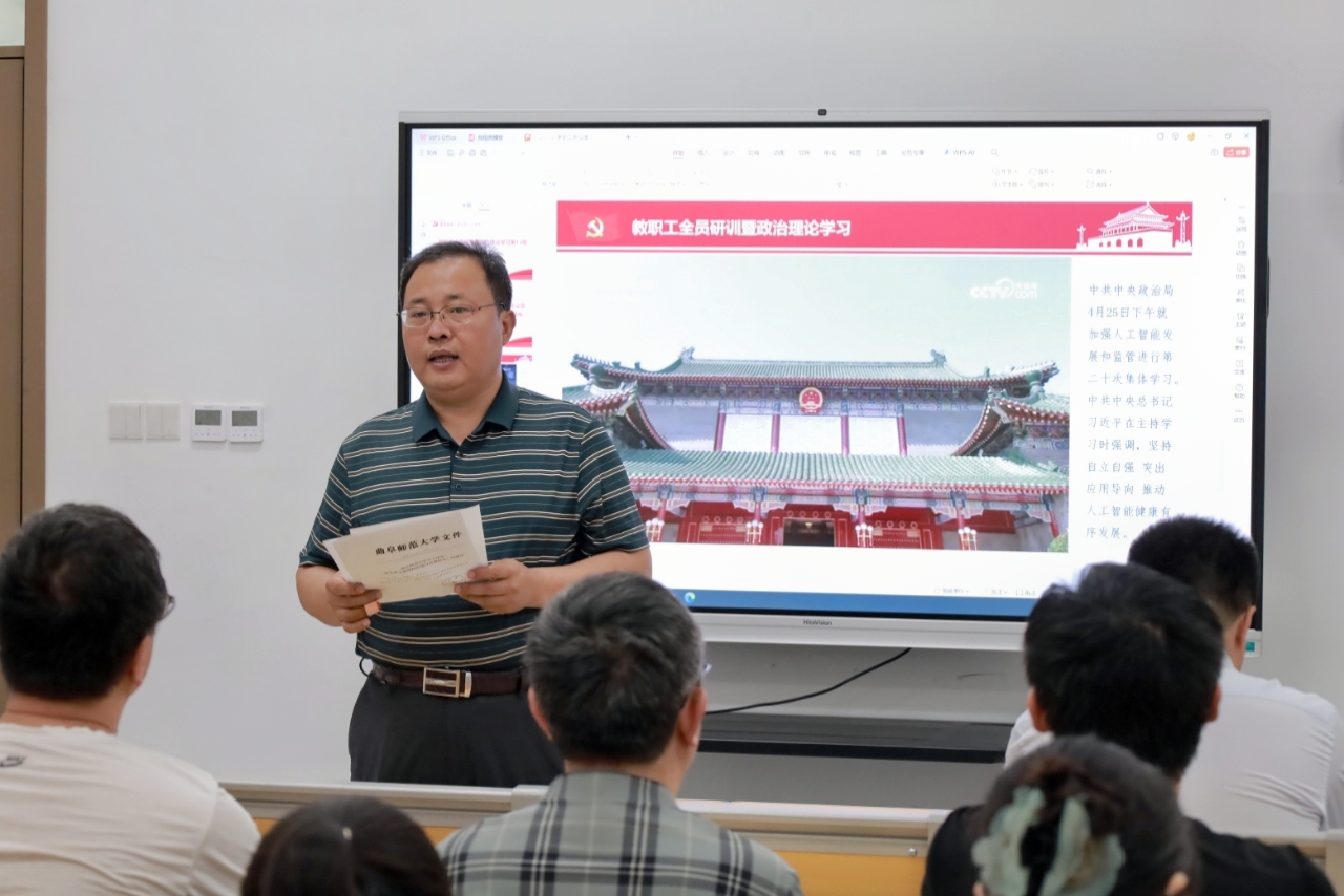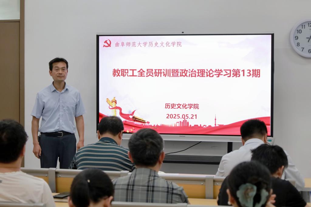 2025年5月21日下午,大乐透 在孔子书院B120教室开展教职工全员研训暨政治理论学习第13期。活动由学院党委书记姜开勇主持,学院党委学习委员孙锋领学,在校教师50余人参加研训。