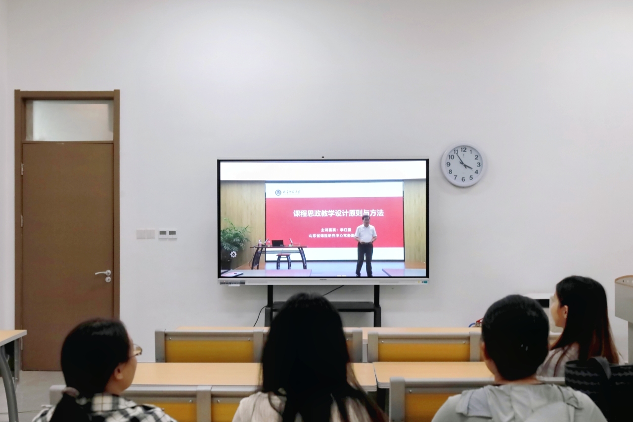 在政治理论学习之后,全体参训教师观看了齐鲁工业大学李红霞教授所作的报告《课程思政教学设计原则与方法》录像。报告中,李红霞教授从课程思政建设的相关会议精神与文件解读入手,阐述了课程思政改革的背景、意义和建设目标,生动地讲解了如何充分挖掘和运用各门课程中蕴含的思政教育资源,实现思政育人与课程学科内容的有机融合。