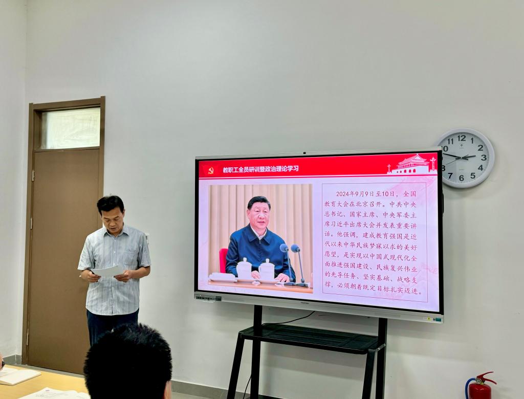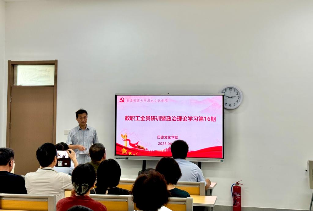 2025年6月11日下午,大乐透 在孔子书院B120教室举行教职工全员研训暨政治理论学习第16期活动。活动由学院党委学习委员孙锋领学,近60名在校教师参加。