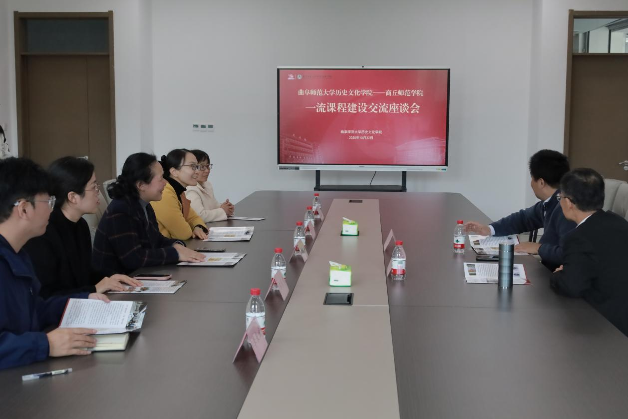 王京传对杨春风一行来访表示热烈欢迎,并介绍了学院的发展历程、学科建设等情况。杨春风对学院的热情接待表示感谢,对学院工作取得的成绩表示肯定,并向与会人员介绍了商丘师范学院传媒学院的基本情况以及学院在课程建设、人才培养等方面的特色举措。成积春教授介绍了学院在一流课程建设方面取得的成绩和特色做法。