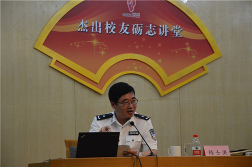 讲座开始之前,校庆志愿者为陈士渠展示了“曲园印象”主题视频并向在座同学隆重介绍陈士渠。报告共分为工作经历、心得体会两部分。陈士渠结合自己二十多年来的工作经历,以在云南、广西、贵州等地的打拐行为为例,给同学们敲响了警钟,同时介绍了公安部打拐办为对抗拐卖行为制定的一系列措施,并告诫同学们要提高自我防范意识。陈士渠提出:珍惜时光,努力学习,是做好工作的基础;勤奋敬业,忠于职守,是做好工作的前提;与时俱进、开拓创新,是做好工作的关键。他希望同学们勇于创新,不要墨守陈规。报告结束后,陈士渠与在场同学进行了互动,对现场观众和微信墙上的提问进行了详细作答,并与提问同学合照留念。