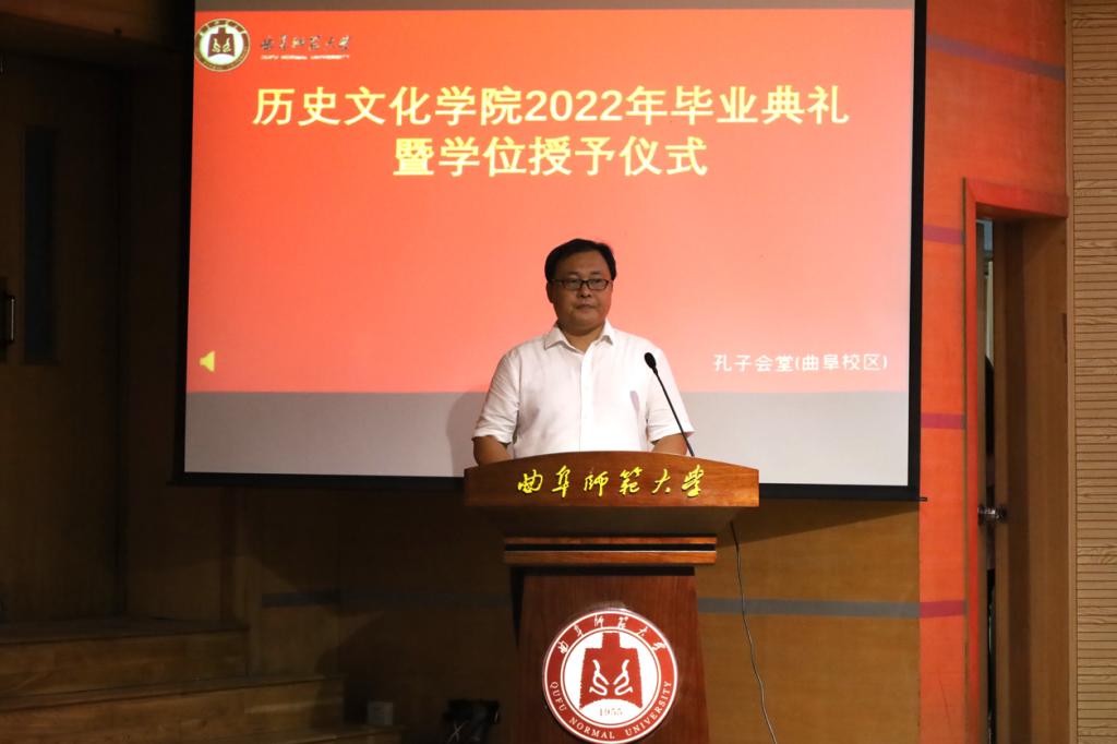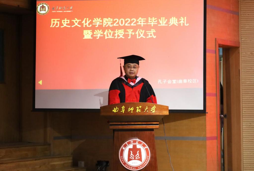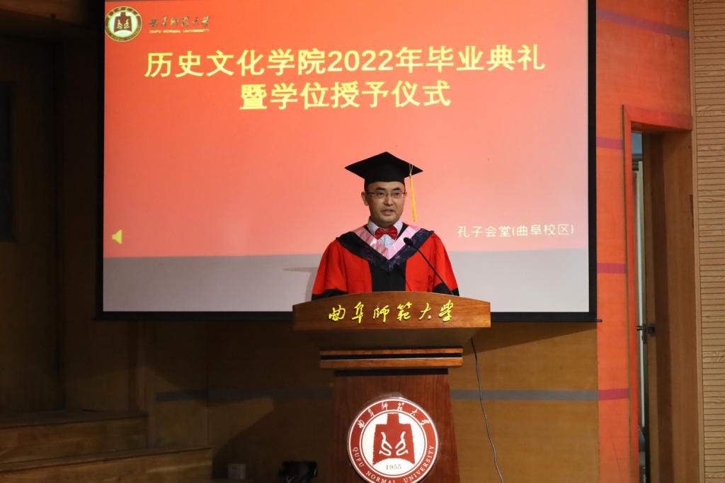院长吴佩林教授代表学院向毕业生们送上祝贺与祝愿。他表示,2022届毕业生们在学习科研、创新创业、社会实践等各个方面取得了优异成绩。他勉励毕业生们志存高远、立身行道,铭记“学而不厌、诲人不倦”校训和“博学于文,行己有耻”的院训精神,以曲园人特有的德性、睿性、韧性,将志存高远贯穿于务实笃行中,将雄心壮志落实到脚踏实地上,在驰而不息的奋斗中成就更绚丽的人生!